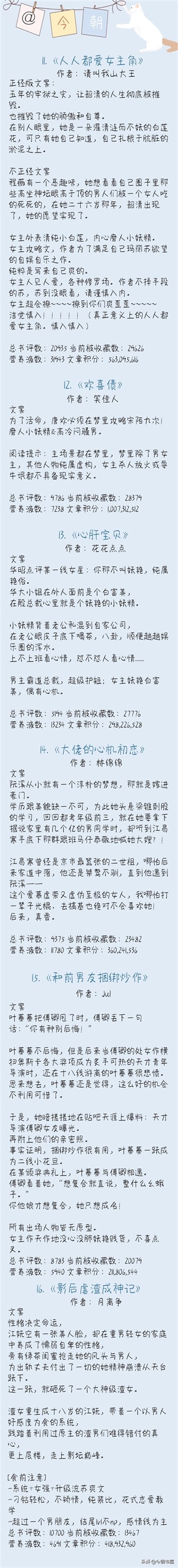 小说速览(按小说收藏量排名)欢迎姐妹们推荐或排雷~