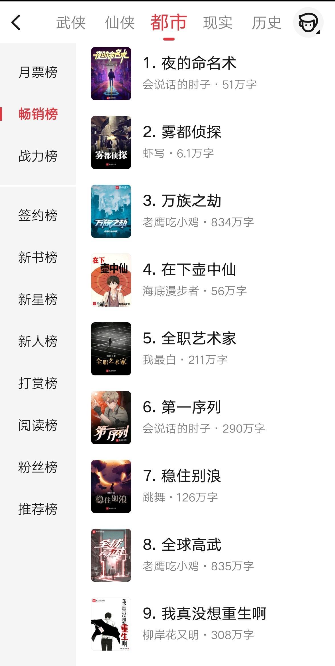 这本小说完结期间,在起点榜单上的名次可是一点也没有下降的意思。就在肘子新书上架以前,《万族之劫》可是一直霸榜起点都市畅销榜首,在单频道上的人气堪比《诡秘之主》。