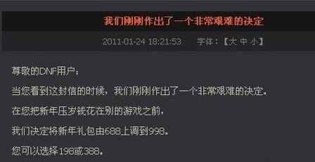 那一年是2011年春节,DNF惯例出售了春节礼包,可是这一次的礼包彻底惹恼了玩家。