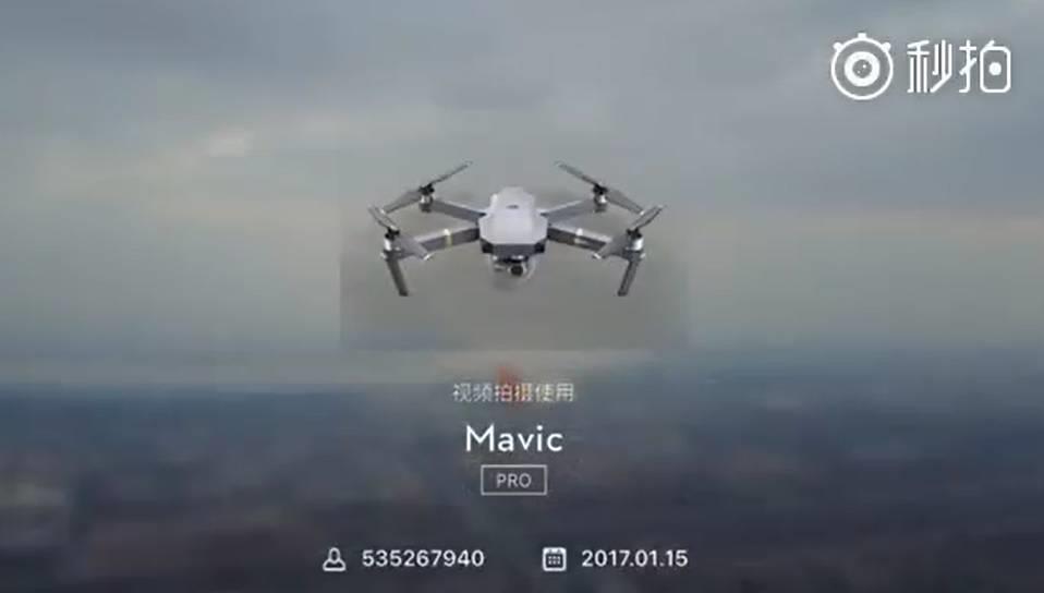 视频最后的画面跳出一张大疆无人机的照片,下面写着:视频拍摄使用Mavic Pro(大疆的一款无人机),跟着一串数字和疑似拍摄日期:2017年1月15日。