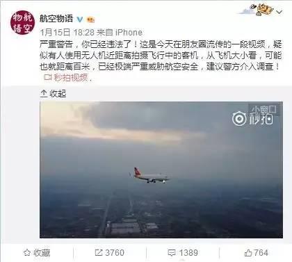 危险!无知小哥竟操作无人机,近距离拍摄民航客机