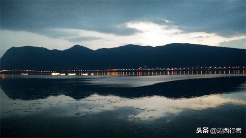 对岸的西山在黄昏里,像一个仰卧而眠的女子,难怪称其为“睡美人”。风景无处不在,我们缺乏的往往是发现美景的视角,暮光灯影下的滇池与西山原来竟如此诗意。端坐在“睡美人”对面的石砌栏杆上,突然感到这是一座孤独的城,而我一直是一场孤单的旅行!