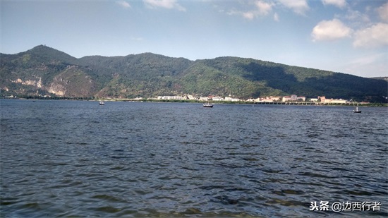 沿着路向西走二百米就到滇池大坝,开始还不知道上去就是滇池,一直沿着观景路前行,听到大坝上有人说话才知道可以上去。上边是观景水岸,游客三三两两,看提示牌才知道这里是观赏鸥鸟的最佳地段。可惜不是鸥鸟翻飞的季节,偶尔有几只鸟儿眨眼飞过。对面就是西山,这里其实只是滇池伸出来的一只手臂,看不到滇池全貌。