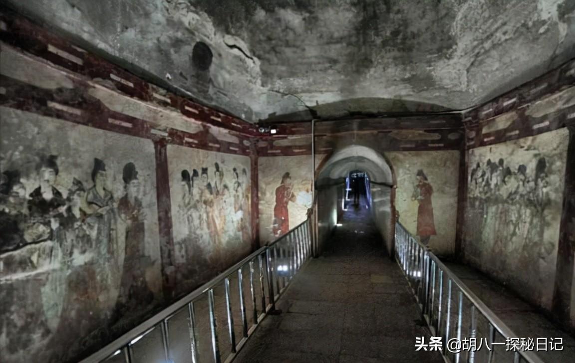 而通过大量的考古研究,史学家对乾陵地宫的概况做出了一定的推断。墓道近百米长、约4米宽、数10米深、呈斜坡形,一直向前走到了一道汉白玉石门前,虽不如唐宫大门大,但至少也有五米高。门上也雕刻着华美的图案,虽有百吨之重,但打开关闭没有任何难度。为了将盗墓者拒之门外,门后还藏着陷阱和暗器。为了显示大唐国力之盛,墓道里洒满了钱币,两边则镶嵌着内容丰富、技艺高超的画作。