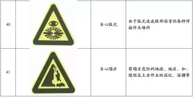 我国规定的警告标志也很有多种,其中与安全生产相关的如:注意安全、当心触电、当心爆炸、当心火灾、当心腐蚀、当心中毒、当心机械伤人、当心伤手、当心吊物、当心扎脚、当心落物、当心坠落、当心车辆、当心弧光、当心冒顶、当心瓦斯、当心塌方、当心坑洞、当心电离辐射、当心裂变物质、当心激光、当心微波、当心滑跌等。下图是本质安全网搜集的一些常用的警告标志: