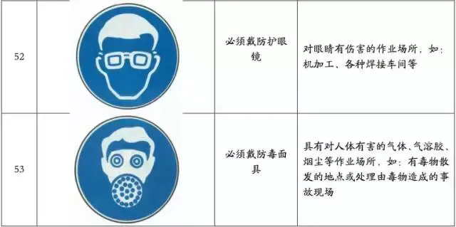 指令标志中与安全生产相关的如:必须戴安全帽、必须穿防护鞋、必须系安全带、必须戴防护眼镜、必须戴防毒面具、必须戴护耳器、必须戴防护手套、必须穿防护服等。下图是本质安全网搜集的一些常用的指令标志: