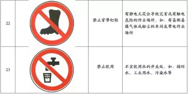 我国规定的禁止标志有很多,其中与安全生产相关的如:禁放易燃物、禁止吸烟、禁止通行、禁止烟火、禁止用水灭火、禁带火种、禁止启机修理时禁止转动、运转时禁止加油、禁止跨越、禁止乘车、禁止攀登等。下图是本质安全网搜集的一些常用的禁止标志:
