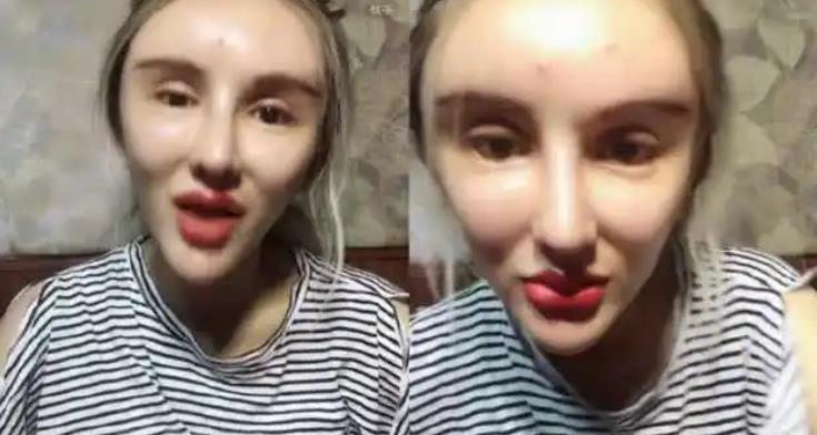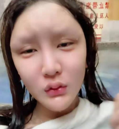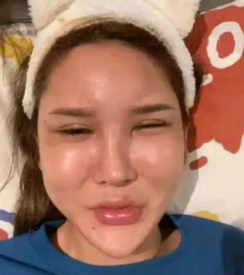 从她拍摄的视频中就能看出,去掉美颜后,画面中只剩下她那肿得像包子一样的脸,以及因为多次做眼睛,而遗留的无意识眼部抽搐。