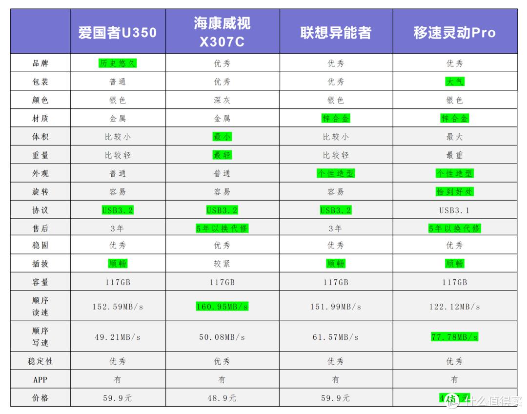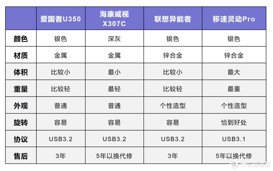 小啥点评:四款U盘外观方面移速灵动Pro、联想异能者更加有个性而且可以避免烦人的指纹,参数方面移速灵动Pro接口协议稍逊一筹。售后方面海康威视X307C、移速灵动Pro优势明显,体积重量方面海康威视X307C最小最轻。