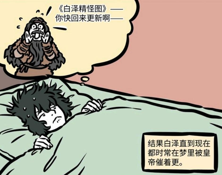 皇帝是看中了白泽的才华,明白白泽就是一个无所不知的神兽,即便一开始并不想收留他,但还是收留了。并且在催促和恳求下写下了《白泽精怪图》,但白泽本就不是个能被人随便束缚住的神兽,写了一半就不写了,认为自己已经在皇帝这里吃好睡好,养好精力了,就放弃了继续写自己的《白泽精怪图》,以至于直到现在白泽也老做梦梦见皇帝催更的场景。
