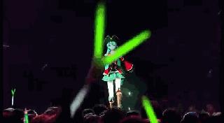 初音酱以全息投影的3D形象在超大屏幕上又唱又跳,使其成为世界上第一个举办演唱会的虚拟偶像。