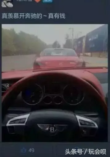 比如这位开玛莎拉蒂的老兄就在朋友圈里羡慕前面开奔驰的...