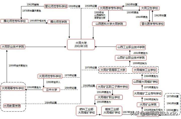 山西大同大学办学历史可以追溯到20世纪50年代,2002年经教育部批准由雁北师范学院、大同医学专科学校、大同职业技术学院、山西工业职业技术学院合并筹建,2006年正式挂牌成立。2018年获批硕士学位授予单位。