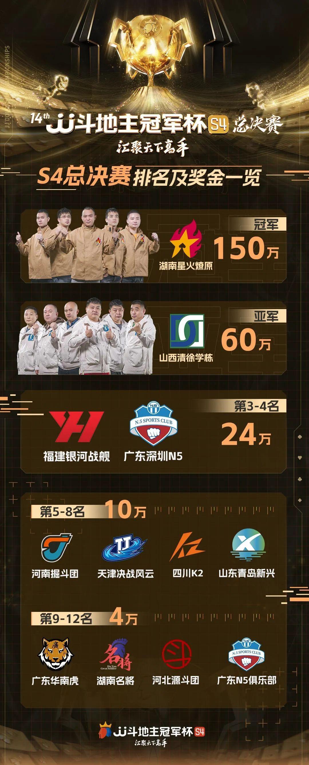 经历114场比赛的激烈厮杀后,JJ斗地主冠军杯S4赛季落下帷幕!
