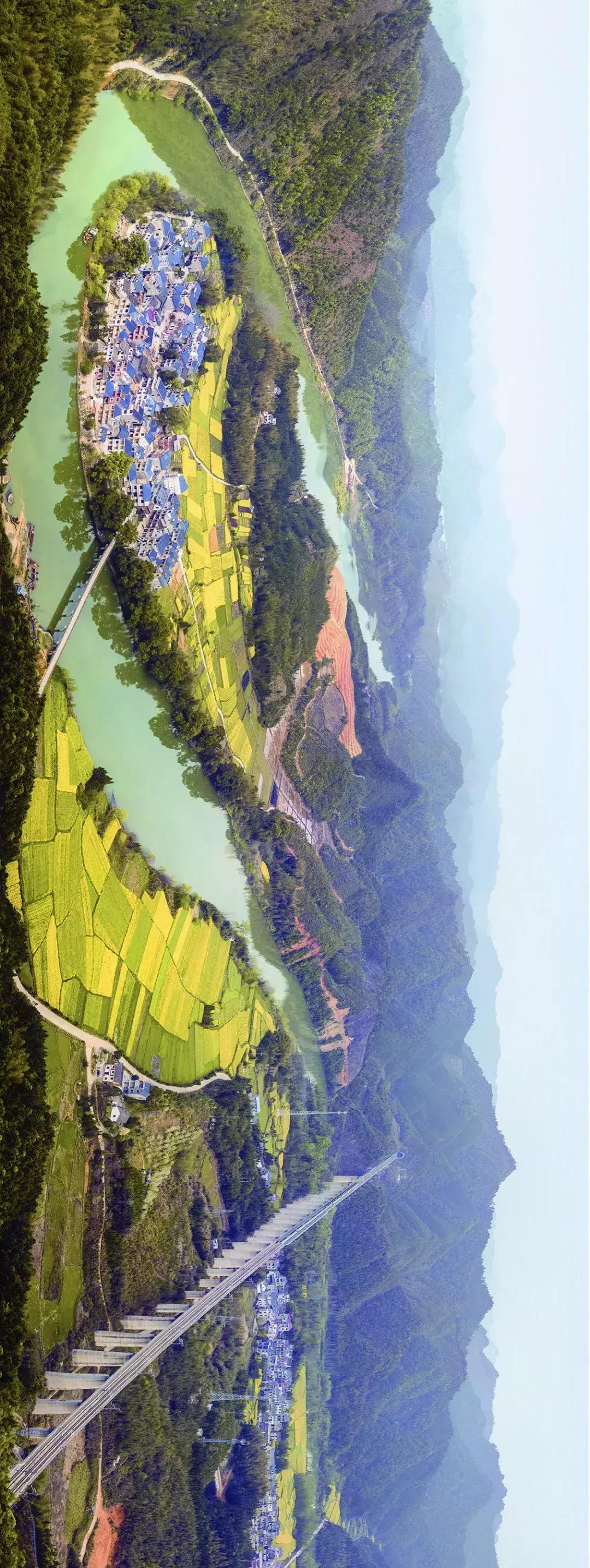 ▼现代交通打破了过去“山限壤隔”的格局,下图为黄渡高铁,(请横屏观看)
