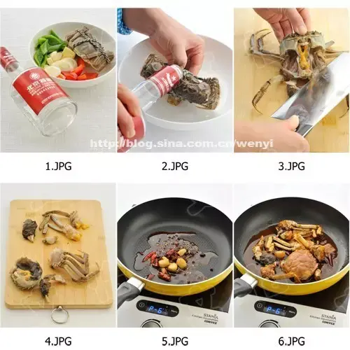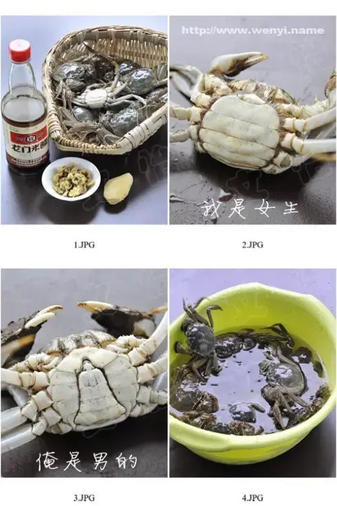 1) 螃蟹清洗干净后,将白酒淋入螃蟹的嘴里,过20分钟后再打开。