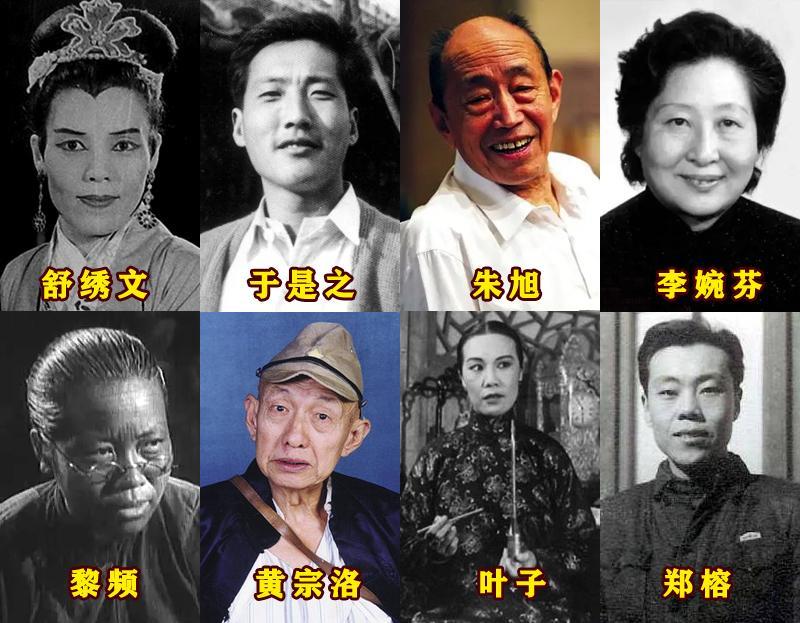 舒绣文、于是之、蓝天野、英若诚、郑榕、李婉芬、董行佶、黄宗洛、金雅琴……