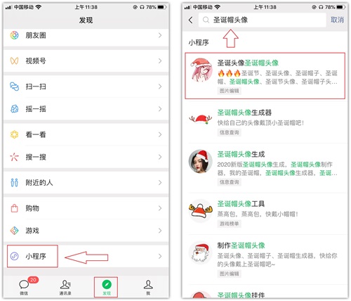 1.很多人都是用微信上的小程序,制作圣诞帽头像的,在我测试了多款小程序后,最终保留了下面这个工具,界面简洁,没有任何广告。