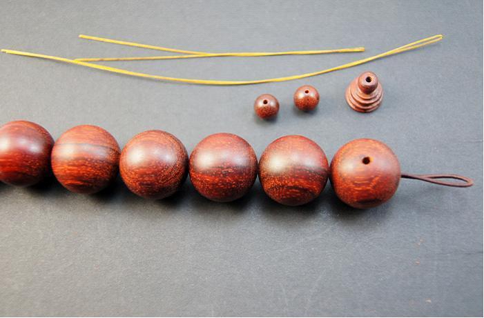 1、先把珠子穿在绳子上,建议双线穿绳结实点,准备好珠子的相关配件。