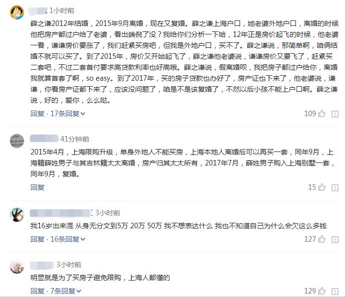 当然, “薛之谦为什么离婚”这个话题也受到了网友的关注,想知道他因为什么原因和前妻高磊鑫离婚,有网友在某篇热门文章下面留言评论,称薛之谦和高磊鑫离婚是为了规避上海买房的限购政策,这只是网友的一面之词,具体原因我们无从得知,恐怕只有双方当事人才清楚吧!