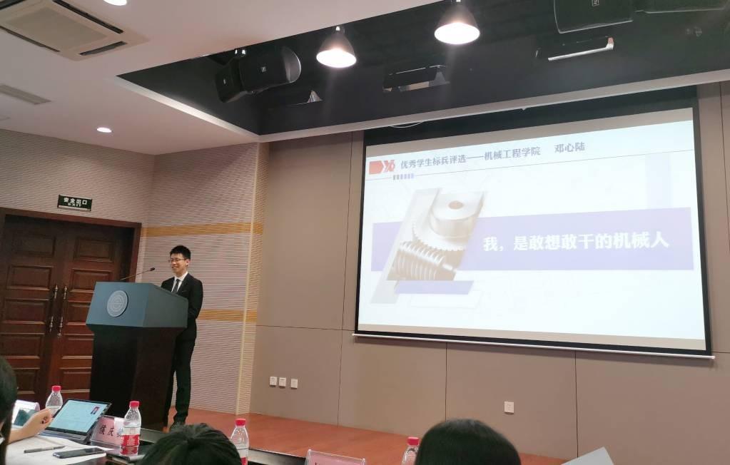 第一,圆专业第一的梦。前两年的忙碌生活,多少有一些成绩的下滑,但大三学年,邓心陆想要证明自己,“我会拿到专业第一的!”前两年的科创积累,让邓心陆有着丰富的专业知识,他也改变了以往的“极限时间学习法”,认真听讲记笔记,周末泡图书馆。最终邓心陆也圆满完成上下学期的专业第一、三学年加权平均成绩的专业第一和综合成绩的专业第一的梦想,实现了专业第一的大满贯。第二,圆“标兵班”的梦。“机1708班,对我而言一直是一个像家一样的地方,我一定会做好班级的一份子!”邓心陆十分感谢班级的同学,他认为过去的荣誉,是班级每一个同学对他的支持和照顾,八班的团结,体现在每一个八班同学的身上。评比优良学风标兵班时,邓心陆也发挥自己做PPT的强项,与班委一起,齐心协力将八班的优秀展示给了全校,八班也荣获优良学风标兵班称号。后来,八班更是再接再厉,将大三学年一考零挂科的共同梦想圆满实现。第三,圆站上领奖台的梦。大三学年,他继续在科创的路上奔跑着,坚持着前两年不懈的付出。2020年机械创新设计大赛,已经是邓心陆第二次参加这个比赛,“两年前,我没能去现场参赛,没能捧着奖杯体验现场的喜悦,这一次我一定会弥补两年前的遗憾。”再次参加机械创新设计大赛,是邓心陆对做科创初心的坚守,更是对两年来一路走来的首尾呼应。邓心陆也如愿以偿地获得了国家级二等奖的奖项,也能够最终站上领奖台,捧着沉甸甸的奖杯,心中无限喜悦。