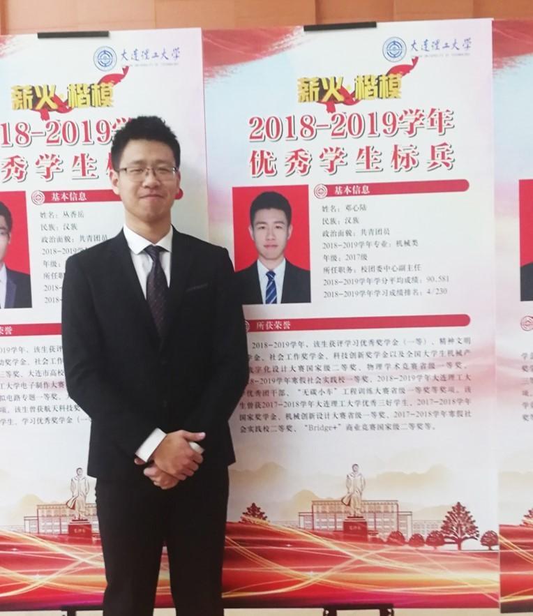 大三学年,属于邓心陆的关键词是“圆梦”。大三上学期,邓心陆获评大连理工大学优秀学生标兵称号,这也是大工本科生的最高荣誉称号。他说:“前两年尝试过许许多多的事情,大三学年我就是想集中精力,给一些事情画上句号,把一些事情做到最好。”