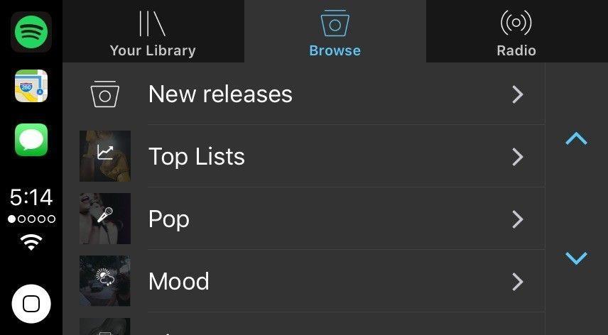 如果 Apple Music 不是你的兴趣所在,或者你是一个忠诚的 Spotify 用户,那么世界上最流行的音乐流服务会为你提供服务,它就是 Spotify。尽管 Spotify 无法享受 Siri 带来的便捷,但你仍然拥有该服务庞大的曲库可选择。应用被分为您的曲库,浏览和广播三个部分。