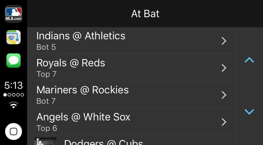 如果你是个棒球迷,MLB At Bat 的 CarPlay 应用程序绝对是棒球爱好者在途上的完美伴侣。虽然它不提供视频(你在开车!),但你可以收听任何的比赛,这要得益于 MLB At Bat 的收音机功能。打开应用程序以获取您可以收听的比赛列表,包括比赛当前内容的一些信息。然后只需点击你想听的比赛,并选择对战一方的广播电台,然后就可以获得和比赛相关的最新资讯。