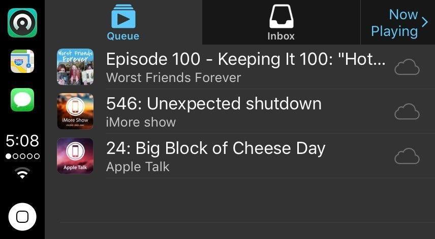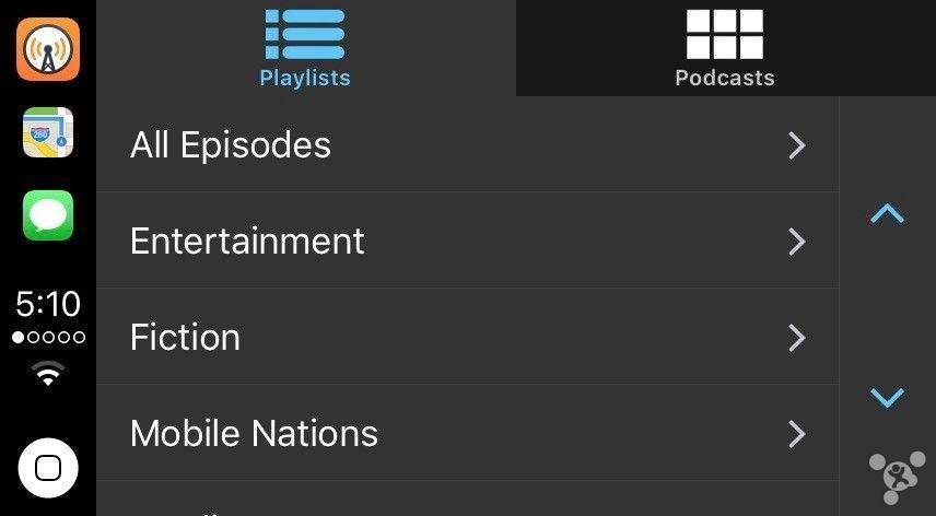 和有声读物一样,播客也是远途行驶过程中打发时间的一个途径。在汽车里,Overcast 可让您访问所有的节目,包括下载到您设备的节目,以及仍然在云端等待的节目。屏幕顶部的两个选项卡可让您在播放列表或具有剧集的节目列表之间移动,之后,您可以轻松地查看您的等待剧集库。