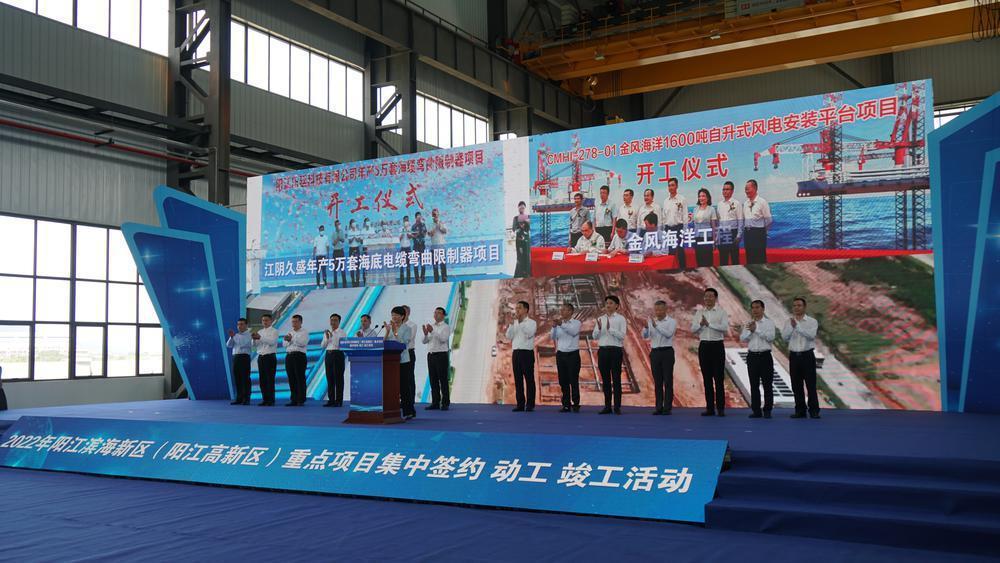 8月30日上午,阳江市举办2022年阳江滨海新区(阳江高新区)重点项目集中签约、动工、竣工活动,共集中签约、动工、竣工项目46个,总投资约213亿元。阳江市委书记冯玲,市长余金富,市领导杨文龙、孙波、张磊、王兵、梁所毅、李宗瑞、冯奕成,中车株洲电机有限公司副总经理申廷国,东方电气风电股份有限公司党委副书记潘乾刚,东亚电力(阳江)有限公司总经理李进伟,金风科技海上业务单元副总经理、广东金风科技公司总经理许磊等出席活动。