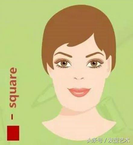 脸型特点:比较圆脸来说,脸部线条比较硬,同时额头和下颌比较宽。