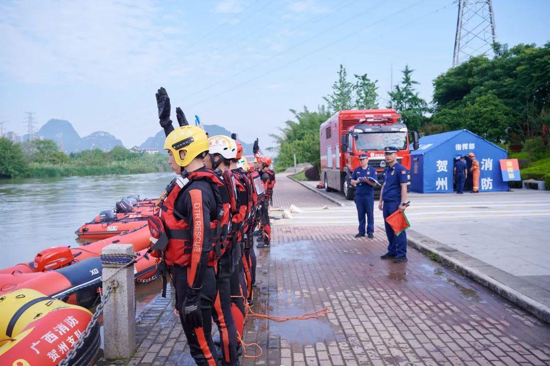 灾情发生后,广西消防救援总队立即启动区内跨区域增援预案,调集桂北协作区贺州、桂林、梧州三个消防救援支队,出动消防救援人员160人、舟艇20艘、消防车18辆赶赴灾害现场。