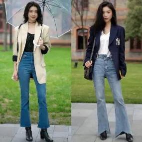 喇叭裤与西装搭配,比较协调,加上是西装的款式,看起来更正式,严谨,这种搭配,尤其适合上班族。