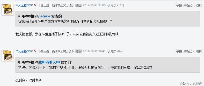 而Q叔在面对斗鱼拖欠礼物钱的事情上用人格发誓,斗鱼四年来从未拖欠过他的工资和礼物钱。但这个回答却又与斗鱼多年以来的名声完全不符,许多主播都是因为斗鱼拖欠工资和礼物的事情离开了斗鱼,而这个表态实在令人匪夷所思。
