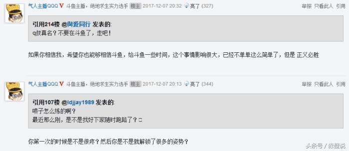 真爱粉表示让Q叔离开斗鱼,Q叔表示在斗鱼直播四年了,也相信斗鱼的处理,并且回答了正义必胜。
