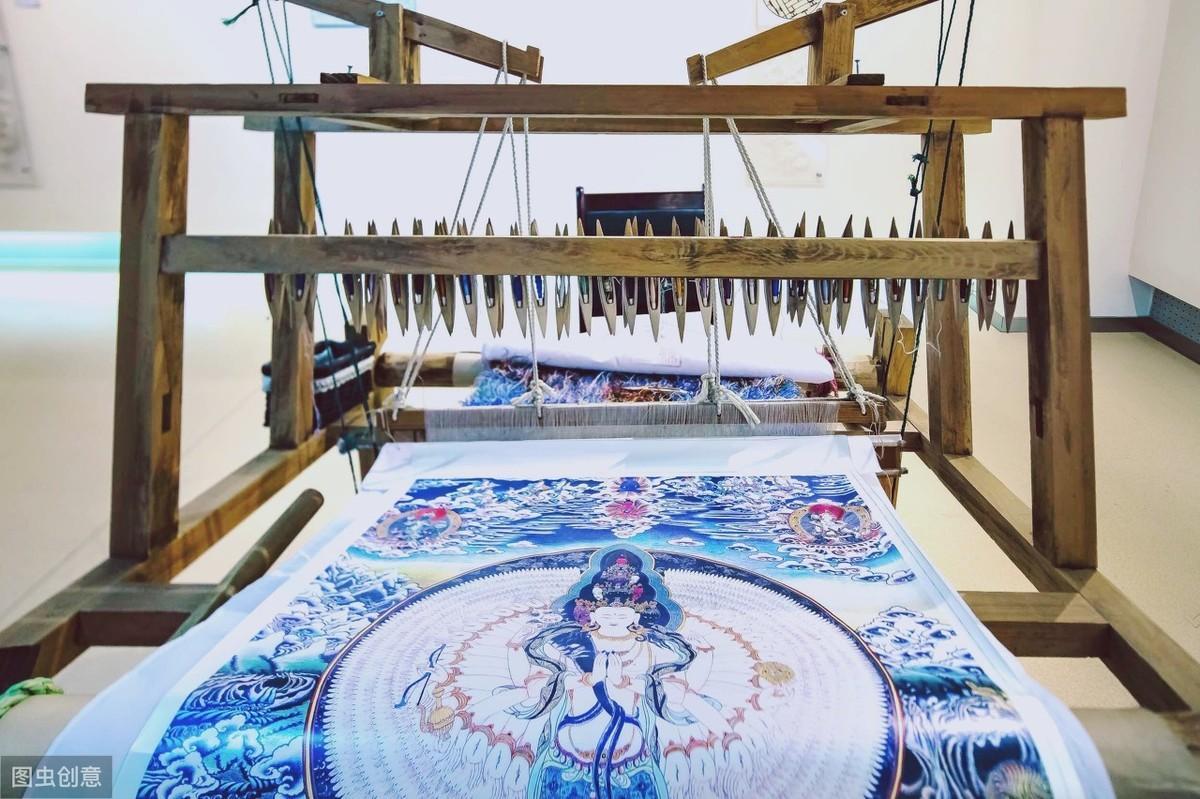 正因为缂丝的难度系数高,它成为了目前为止唯一不能机械化操作的丝织品。一个从艺40年的缂丝大师,一天也只能织2厘米。像这幅《贵妃醉酒》就是两位缂丝大师轮流两班缂织,历时4年半、耗费4万多个工时、共用色线1000余种缂织完成的。因此也创造了单幅缂丝作品耗时最多的世界纪录。