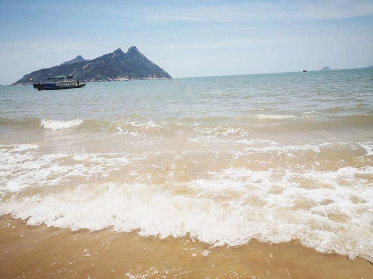 大京沙滩沙质细软、色泽金黄,海水清澈,层层白浪翻滚,不断地冲上沙滩,又缓缓退去。远处海天一色,隐约可见船帆点点,岛屿列列,海鸟成群,一片迤逦好风光。
