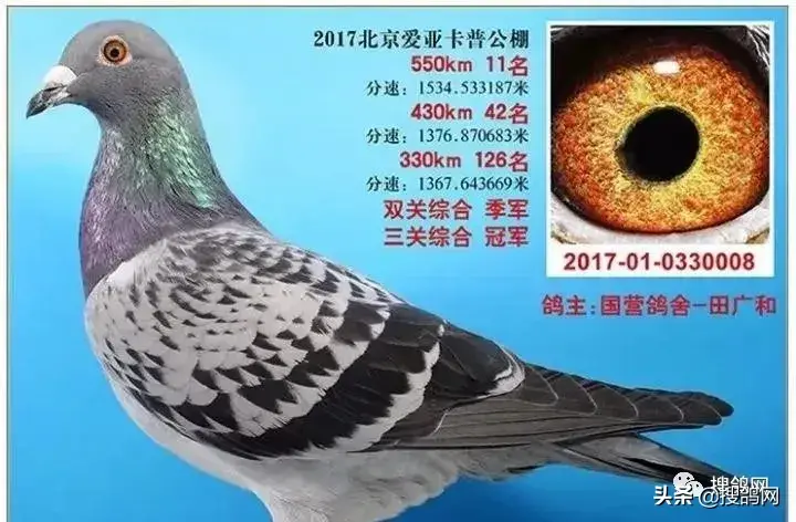 第十一羽,17年北京开创者铁鹰四关综合鸽王7名,身价100万。