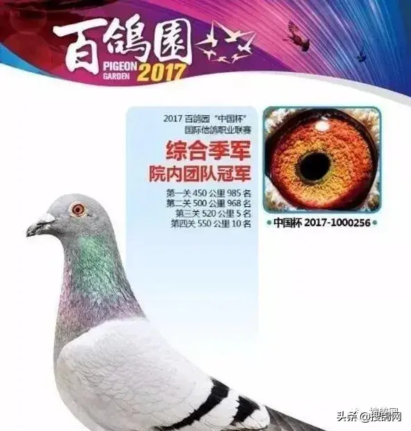 第十二羽,17年北京开创者铁鹰四关综合鸽王9名,身价120万。