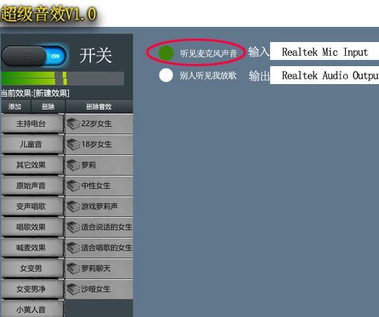 然后就是选择变声器输出。游戏变声器输出的选择,很简单:前提先要把输入选择正确,然后打开听见麦克风声音的按钮,你就可以听到自己变声后的效果。也就说明输出选择正确。
