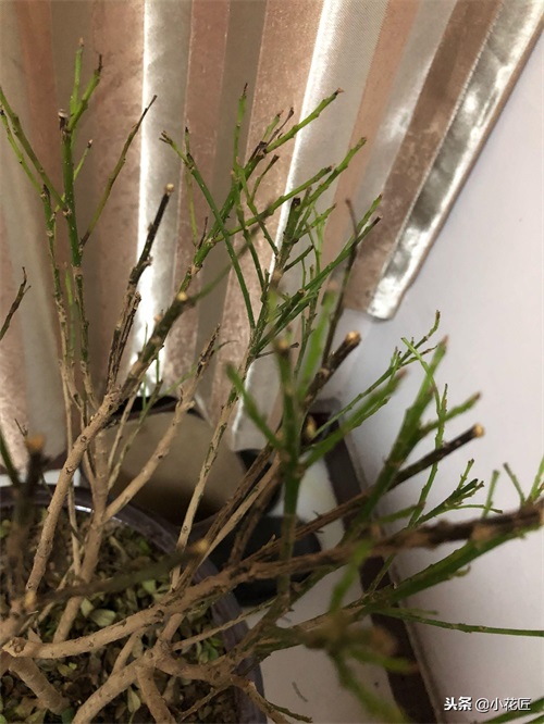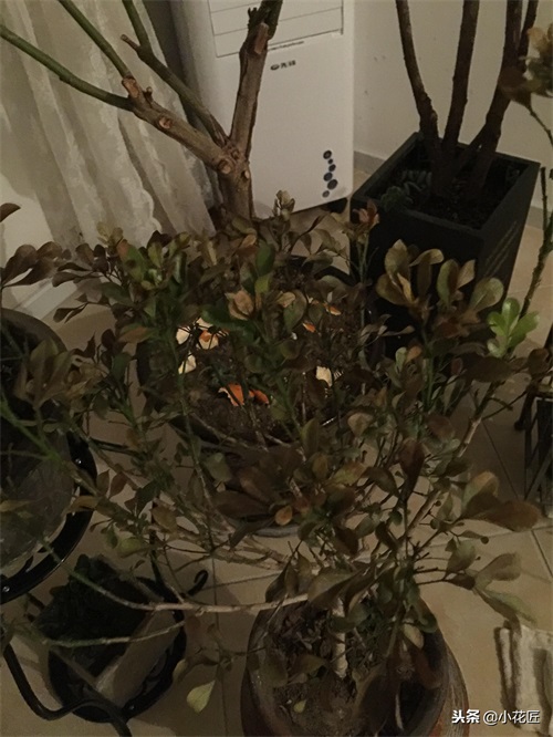 这是一盆米兰,叶片干的特别狠,一碰就会掉,简直可以做干柴烧火了,但是这盆米兰还有生命迹象,是可以救活,因为米兰的生长速度比较快,只要温度在15-25度,1个月内会长新叶,3个月就可以长成很好的形状。