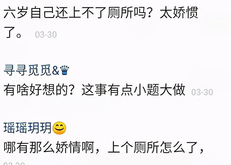 视频曝光之后,有人感叹母爱伟大,但也有人称王小骞是不是太夸张了一点,而且女儿都6岁了,咋还不会自己上厕所。