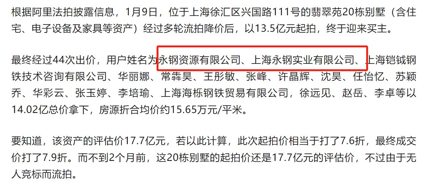 上面提到的永钢就是永卓控股有限公司的控股或关联企业,这也是外界盛传“85后钢铁老板抄底上海别墅”的原因所在。不过,对此此次抄底上海别墅的动因,究竟是投资、扩张,还是自用,吴毅家族则并未对外透露。