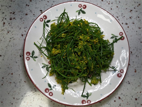 好了,这个就是桔子小厨今天带给大家的油菜花怎么吃,教你这样做,脆嫩爽口,方法简单,一大盘不够吃。小伙伴有什么问题欢迎留言,一起交流分享。