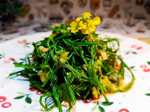 油菜花属于应季食物,过了这个季节,想吃的话就得等来年了呢。喜欢的小伙伴抓紧试试吧。