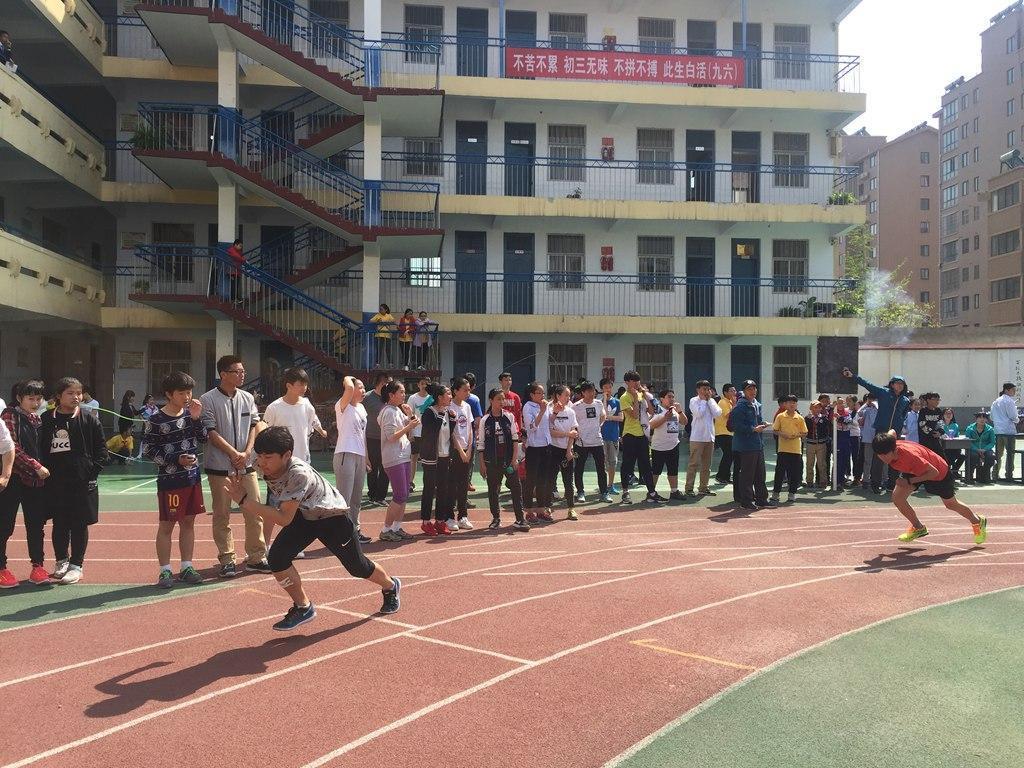 不苦不累,初三无味,不拼不搏,此生白活,九年级六班的励志标语看的人热血沸腾,我来地调学校的时候,正赶上这个学校召开运动会,看到同学们你追我赶、奋勇争先的的场面,我不禁来了兴致,一起和同学们参加了这场别开生面的春季运动会。