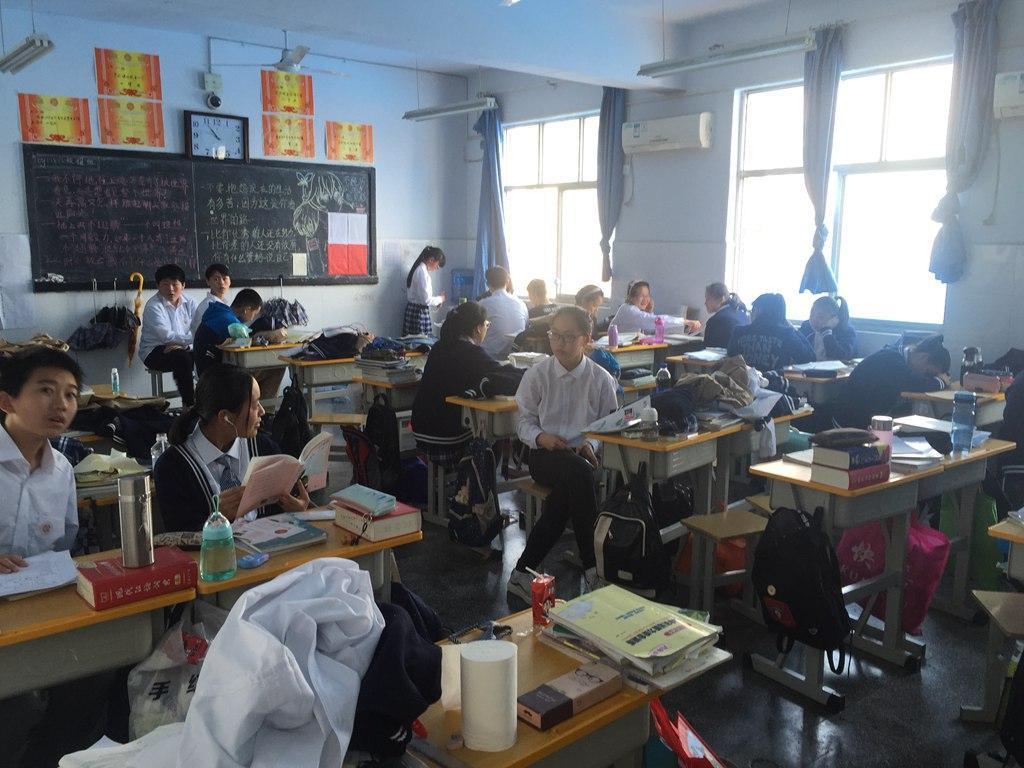 今日不苦,明日无乐,顽强拼搏,战胜懒惰,各个学校都有各自的特色,地调双语学校的同学们,边学习边运动,看到九一班的励志标语,再看看同学们生龙活虎的精神面貌,我也忍不住想上去参与一下。