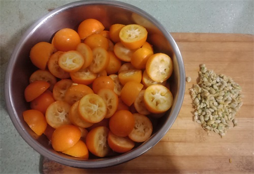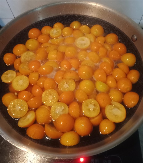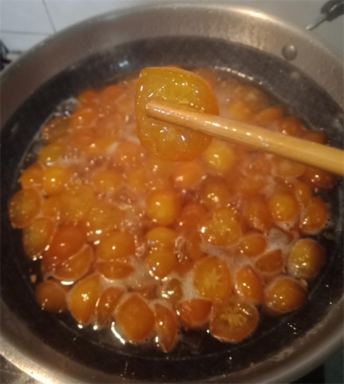 用大火转小火熬一个小时左右到金桔透亮即可关火。