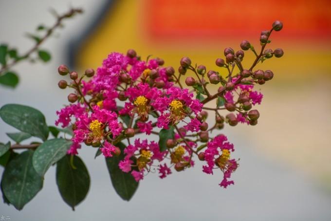 参天老柏摩云翠,绣地繁花映日红。