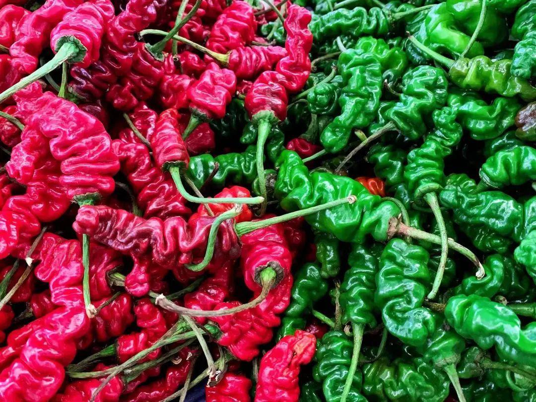 这种歪歪扭扭像肠子一样的辣椒叫皱皮辣椒,倒是很符合它的名字啊,据说用来炒菌子是绝配。